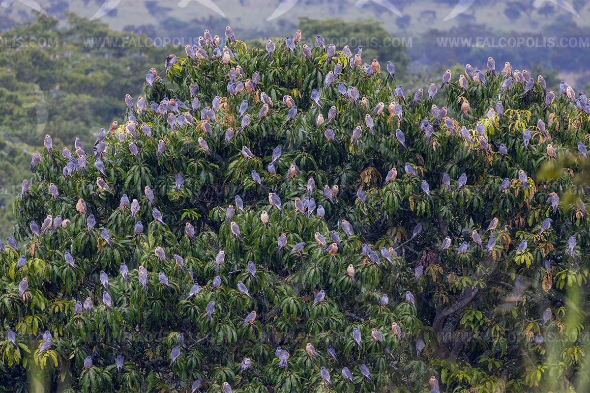 Welcome to FALCOPOLIS — the largest raptor wintering roost site on Planet Earth recently discovered by Hungarian scientists in Angola and featured also in the National Geographic Magazine. The first expedition in 2019 (Dr. Péter Palatitz – MME BirdLife Hungary; Péter Borbáth – Üröm KTE; Dr. Péter Fhérvári – University of Veterinary Medicine Budapest; László Novák – Szatuna Kft.; José Pedro Agostinho – Orbis Angola) successfully revealed the existence of this unique site, which hosts up to one million migratory falcons each year.